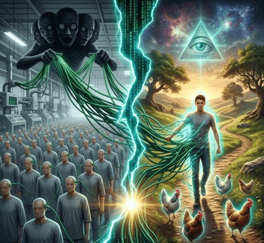 La mayoría de los seres humanos que viven en el mundo moderno están absolutamente convencidos de que poseen libre albedrío, creyendo que cada una de sus decisiones es fruto de una voluntad propia y consciente. Sin embargo, esta convicción es el mayor obstáculo para el despertar, pues impide ver los hilos de los condicionamientos que direccionan nuestra vida. Al igual que las gallinas en un gallinero no se cuestionan por qué están allí ni cuál es su destino final, el ser humano promedio simplemente come, duerme y trabaja, respondiendo mecánicamente a programas culturales, sociales y religiosos que le han sido impuestos desde el nacimiento. Lo que llamamos "decidir" no es, en la mayoría de los casos, más que la ejecución de un reflejo condicionado diseñado por quienes dominan este criadero de humanos para servir a sus propios intereses siniestros.